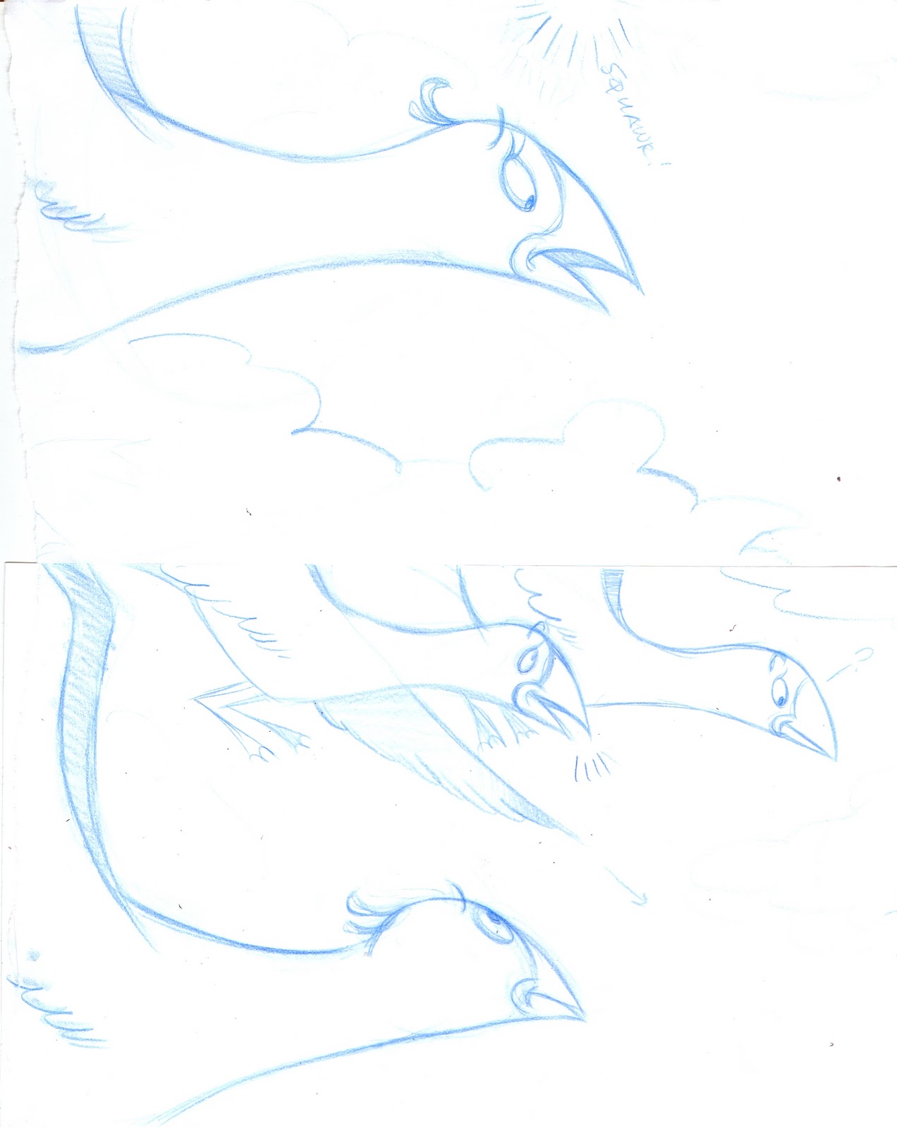 Here's a sketch of the rough size comparison between the octopus and the bird. And here's an adjustment to the bird design. It's still open for change and such.
