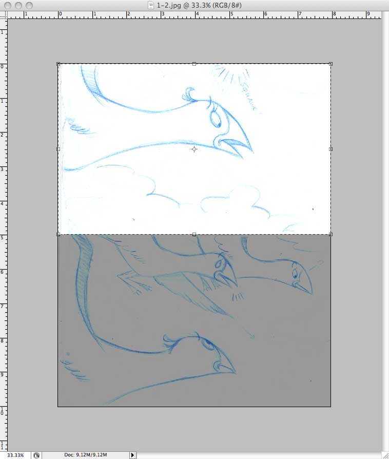 He also thinks the whale scene could be faster. Just have the two talking, Then cut to the surface with a bunch of seagulls flying over. Then have the whale emerge. Looks up, and blows. The octopus comes out, and says "taa-daa!." (Even though he suggested it like this, I really like the way you have the whale swallowing the octopus.)