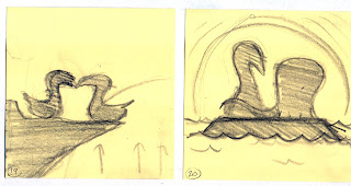 Here's a motif idea I had for the camera shots. Since the story is all about a creature from DOWN below the water trying to get UP above to the air. I think it would be nice to have a lot of pan shots that go up and down (and vice versa).